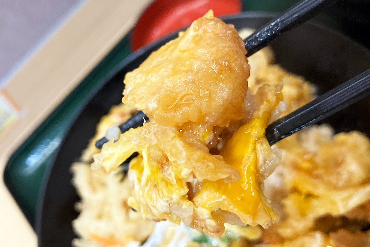 2025年12月1日より提供がスタートした、箱根そば2025年冬季限定メニュー。「鴨そば~九条葱のせ~」に続いて味わったのは、「かき揚げ玉子とじ丼セット」です。