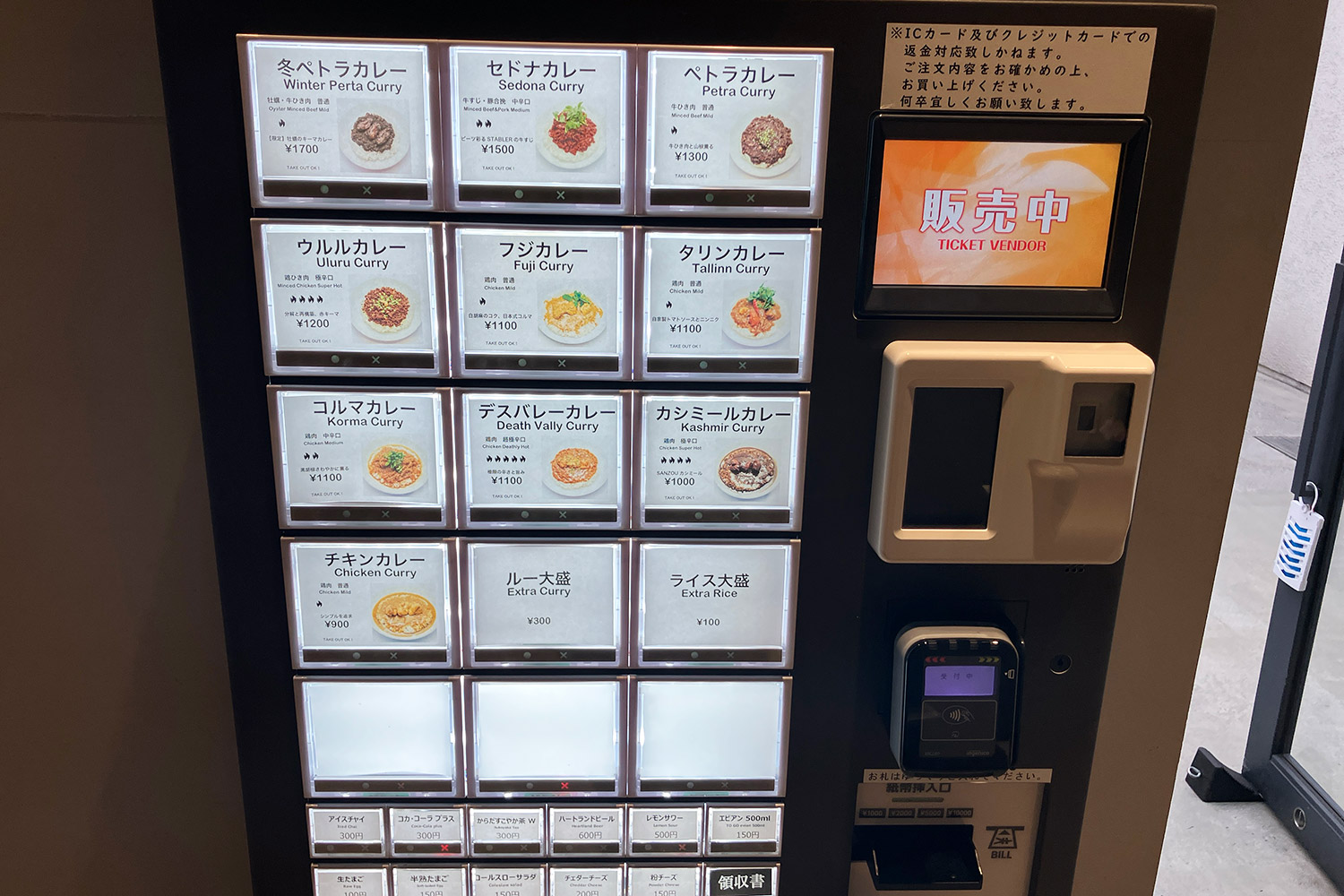 入り口の券売機で食券を購入します。最後に味わうカレーは何にしようかな