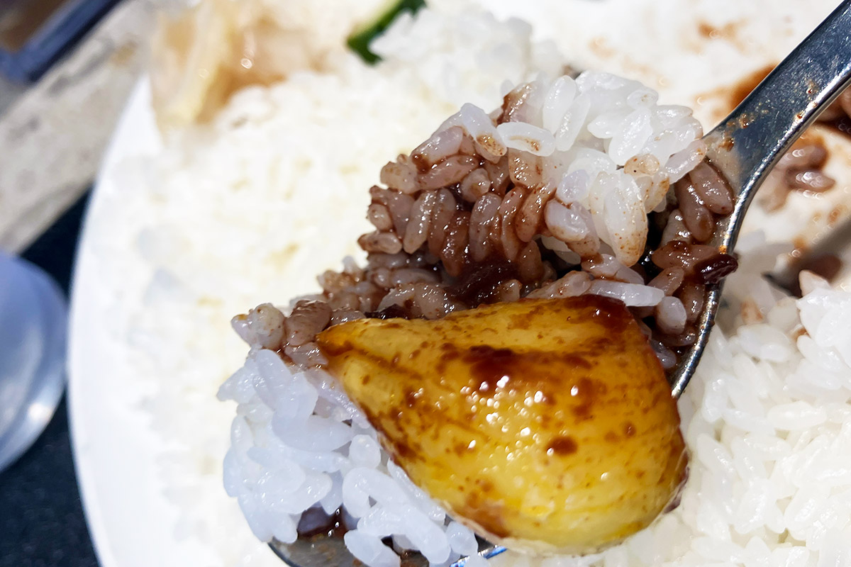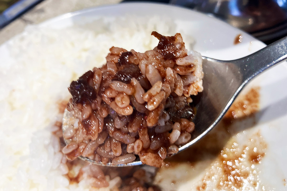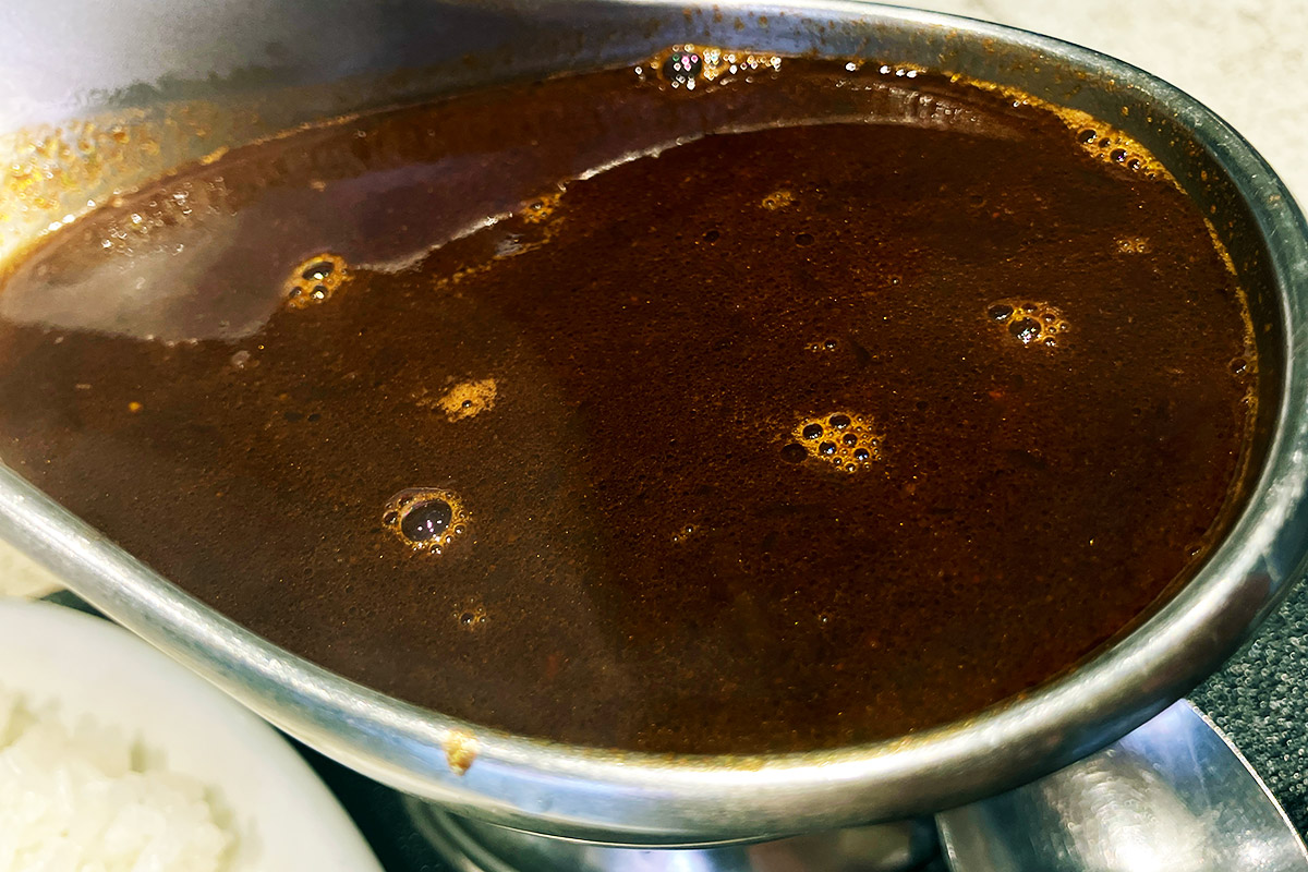 辛い、ストレートに辛い。具材は鶏肉くらいで、サラサラのカレーとお米の直球勝負。食べれば食べるほど辛さが押し寄せてくる。辛口ではなく“極辛口”という表記が正しいことを、実際の辛さで知る事になる。