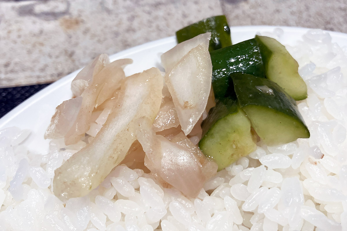 キュウリとタマネギに救済を求めるが、全くもってして助けにならない、でも美味しい