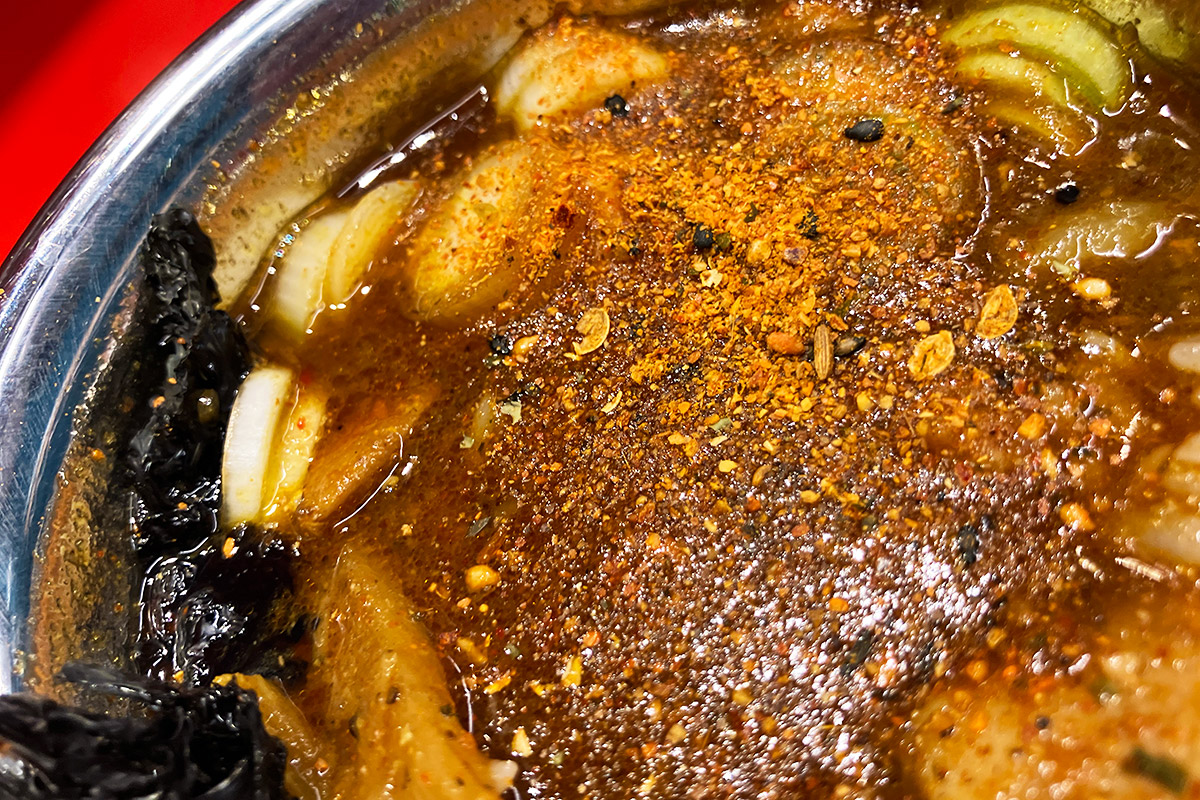 卓上のマサラを加えて辛さをアップ!