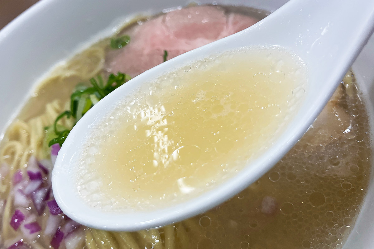・貝出汁が美味しいラーメン。これを食べると、たっぷりと貝を食べた気持ちになり、さっぱりしているようで満足度が高いです。