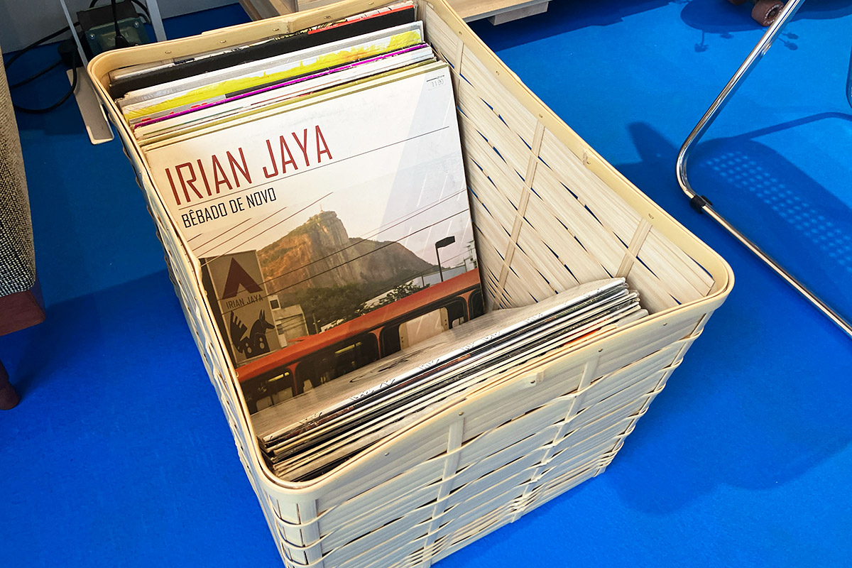 竹細工籠とLP
