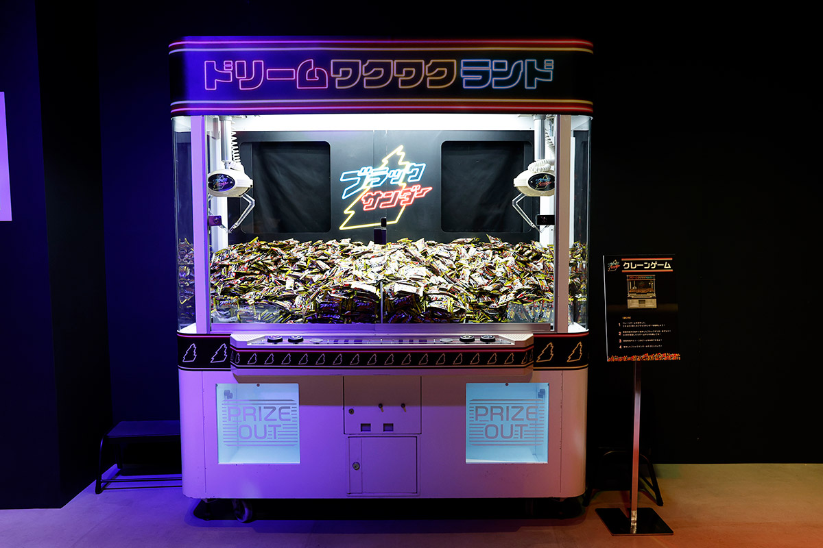 「ブラックサンダー ドリームワクワクランド」は、ブラックサンダーによるブラックサンダーづくしの夢のゲームセンターで、遊んで・食べて・ワクワクする、バレンタイン限定企画です。イベント会場には千本引き・エアーキャッチ・クレーンゲーム・スロットの4種類のゲームが登場し、無料で参加できます。