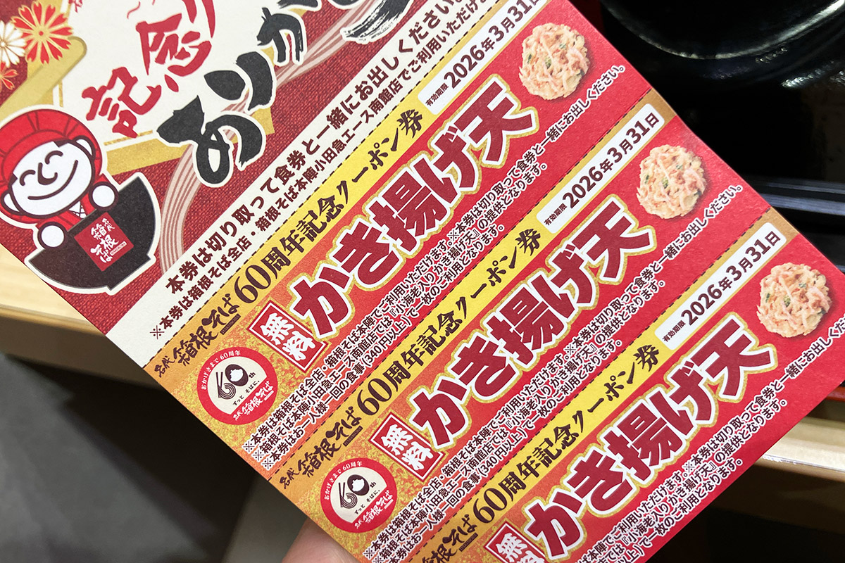 しかも、かき揚げ天のクーポンまでついてきちゃうし、、、まだ、配ってるみたいです