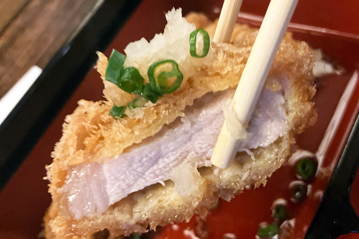 ソースで食べるとんかつもいいけど、おろしで味わうかつもサッパリしていてイイですね。もちろん揚げたてなので、お肉のジューシーさや脂の味わいもしっかりと感じられます。