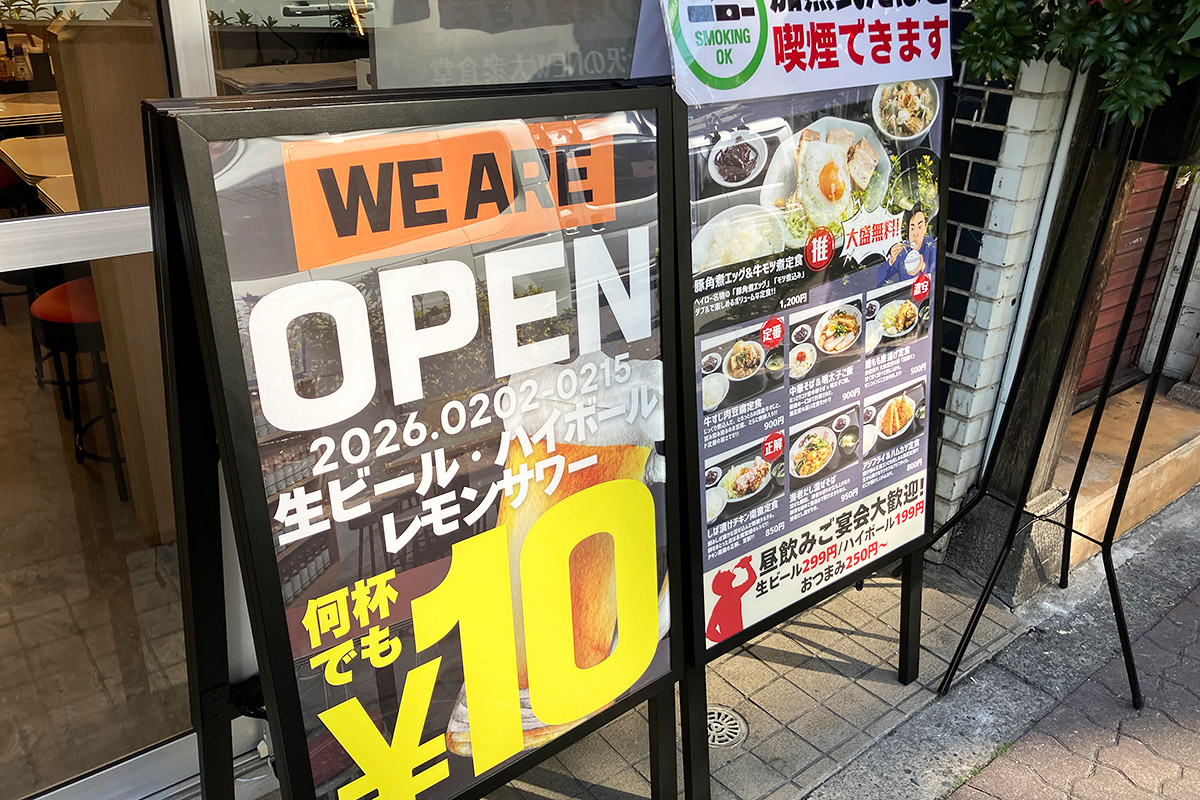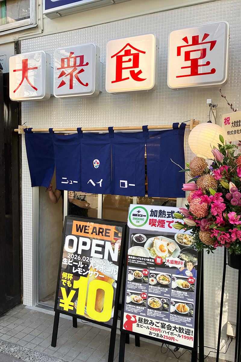 2026年2月2日(月)12時、餃子の王将向かいに大衆食堂『ニューヘイロー』がオープンしました。ちなみに、昨年オープンした『カキノバル』の姉妹店とのことです。