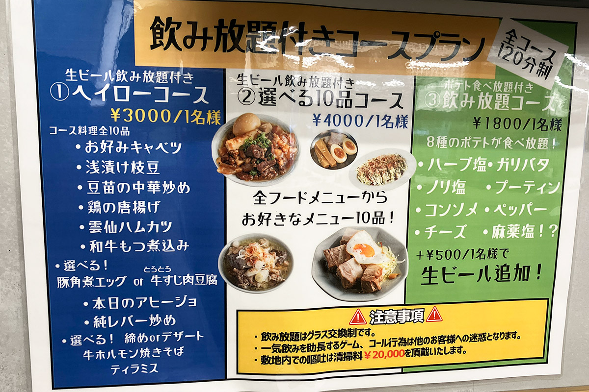 いつの間にかこんなコースもはじまってました。え、10品ついて生ビール飲み放題で3000円!?