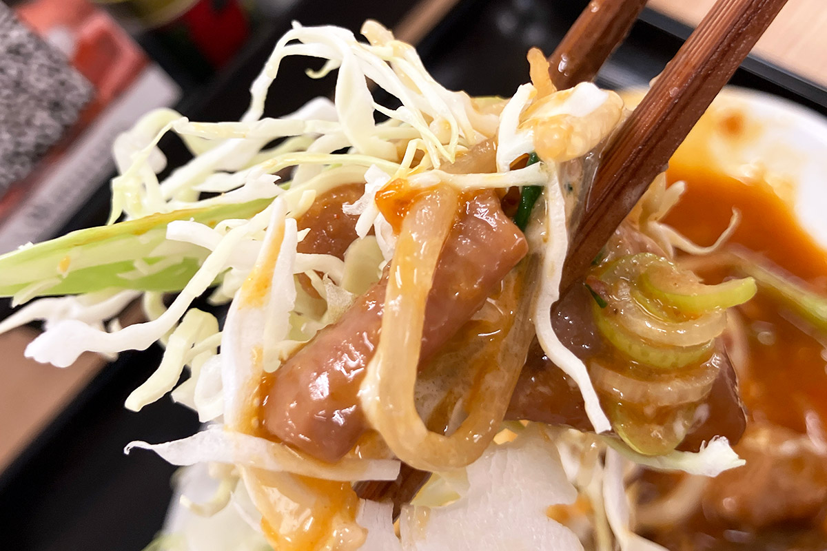 そう、スタミナ定食と言われてもどんな味なのかイメージできていませんでしたが、ケチャップがベースで食べやすい。柔らか牛ホルモンとたっぷりお野菜で、めーっちゃごはんが進みます。