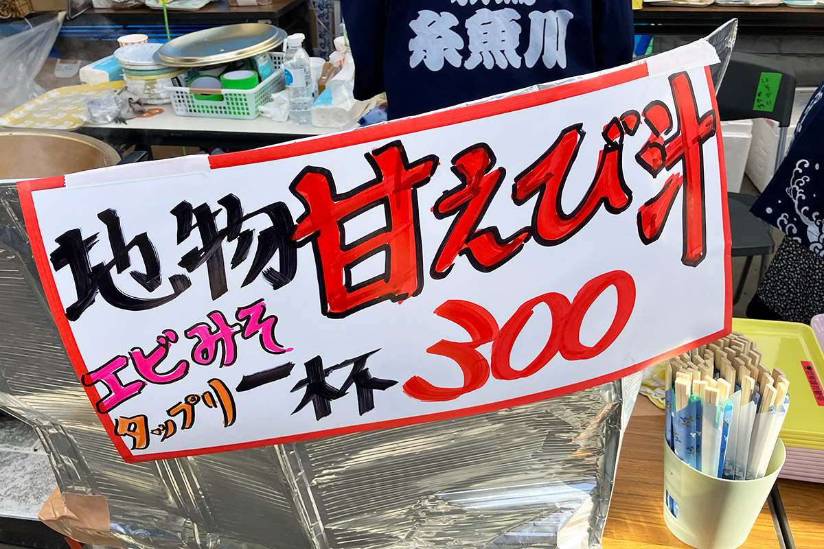 当日は、日本海直送のカニで豪快に作る「カニ汁」をはじめ、糸魚川名物「あんこう汁」や「エビ汁」、「ブラック焼きそば」、にいがた地鶏“翠鶏(みどり)”の炭火焼き鳥、甘えびメンチやかまぼこメンチなど、糸魚川ならではのグルメが勢ぞろいします。