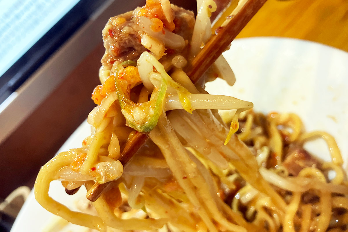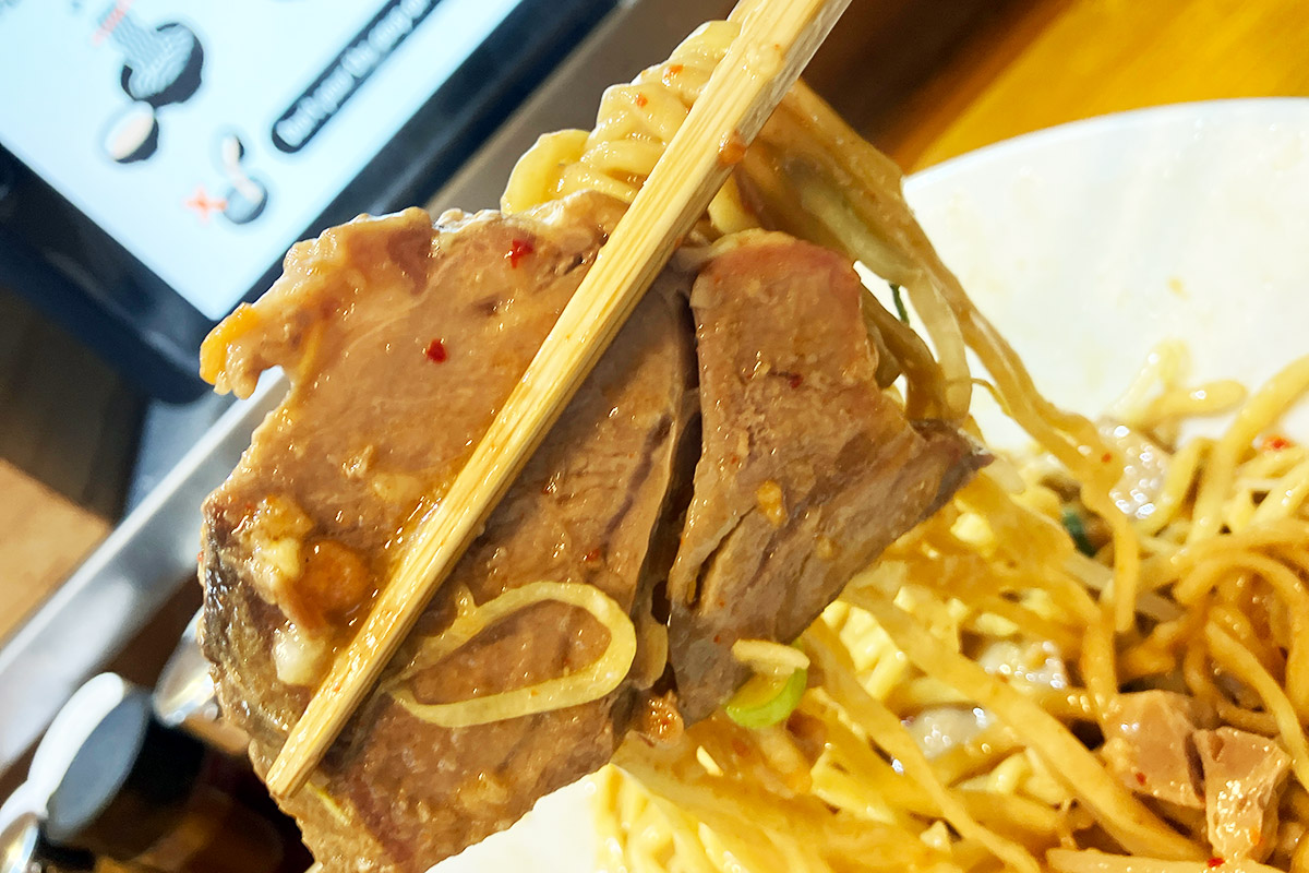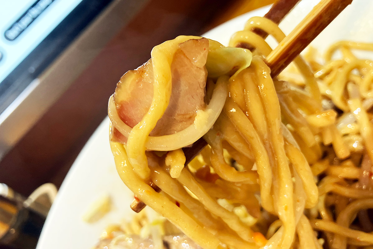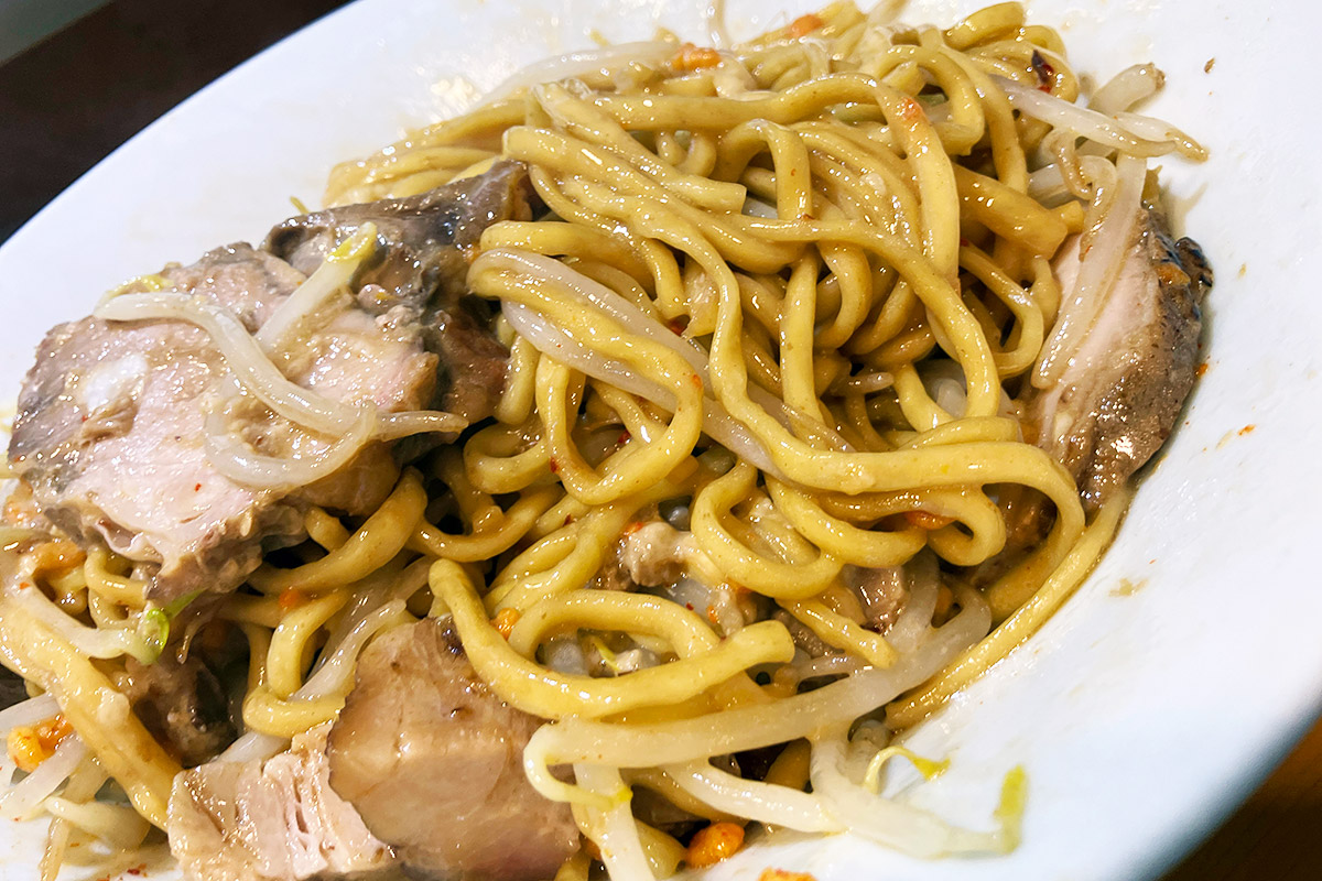 麺はちょっと固めと聞いていたので、混ぜるのが大変だった~。めっちゃ濃いかなと思いましたがそこは『そると』、絶妙なタレ具合に仕上がっていました。