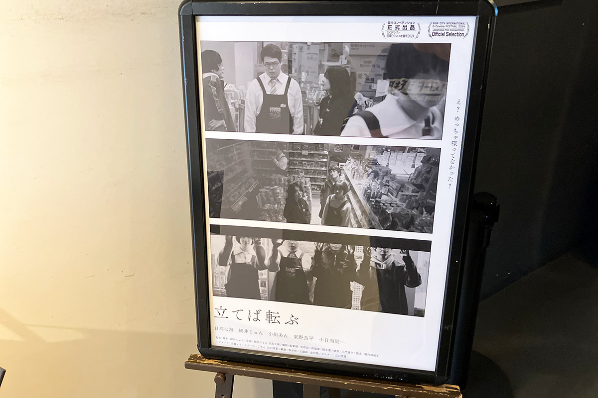 実はトークイベントの最後に谷川店長が紹介していましたが、「立てば転ぶ」は細井じゅん監督の監督としての初作品で、「結局珈琲」にも出演している日高七海さんと東野良平さんも出演しています。こちらの作品は4月17日(金)から1週間限定で上演されると知り、