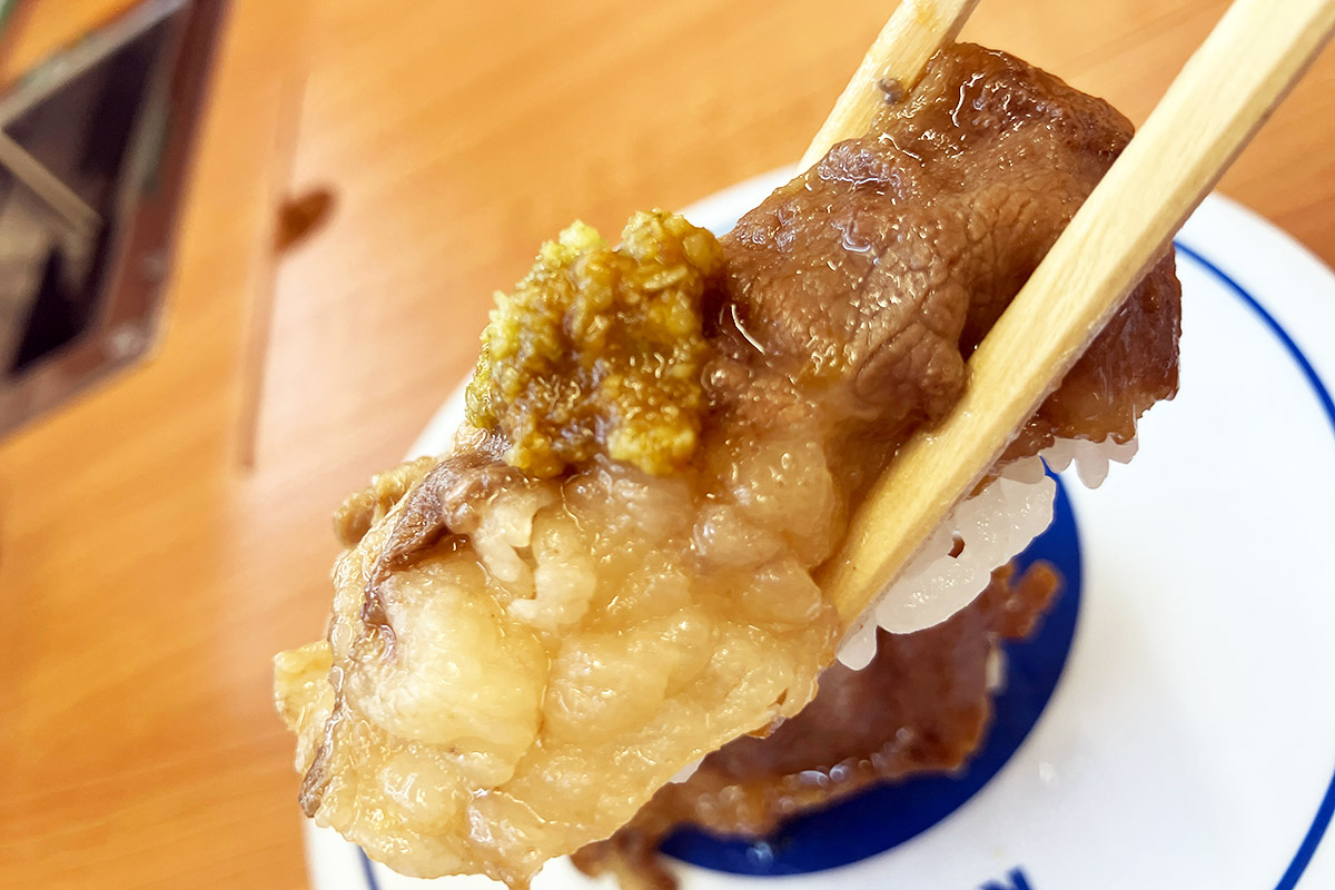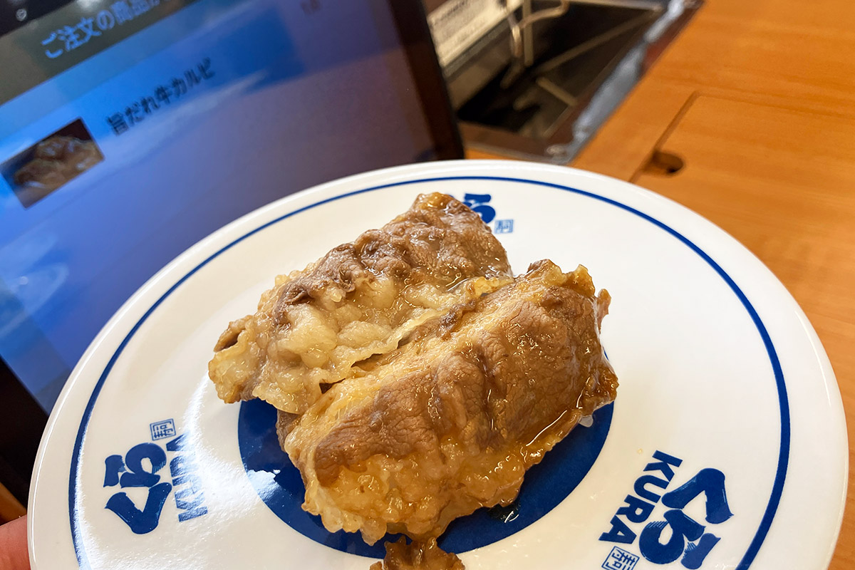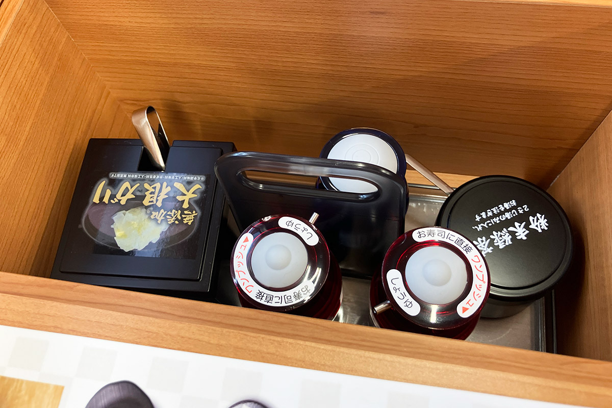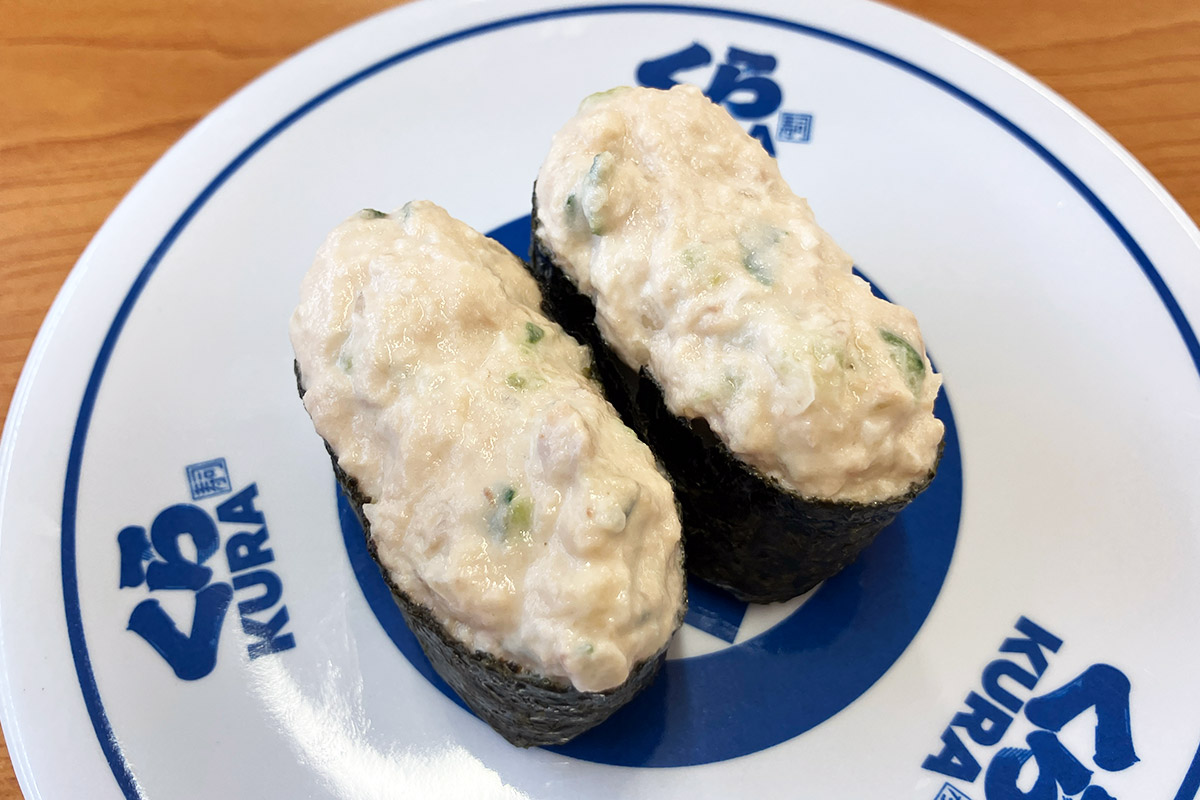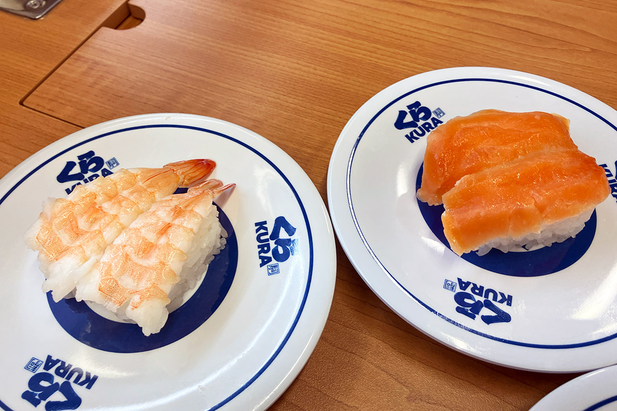 で、空いた皿にガリを載せるわけですが、そこには「無添加大根ガリ」の文字が。え、どういうこと、大根のガリって? 説明しよう!くら寿司では2023年12月より、ガリが生姜から大根の甘酢漬けに変更されたのだっ!! へー、全然知らなかった、生姜に比べても辛味が少ないのでキッズでも食べやすいかも。