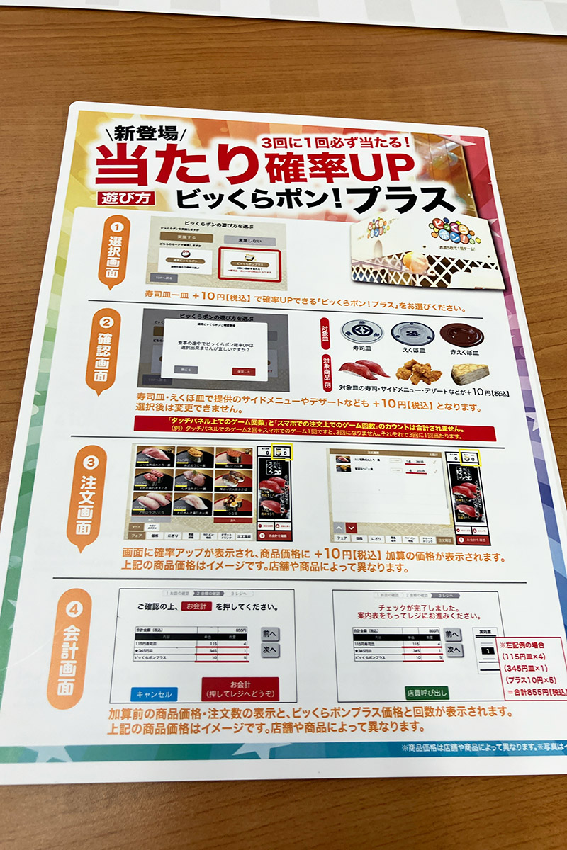 普段10皿も食べないのに、5皿ごとにできる「ビッくらポン!」マジックで食べる羽目に。しかも、当たらなかったポン~、なんでや~!
