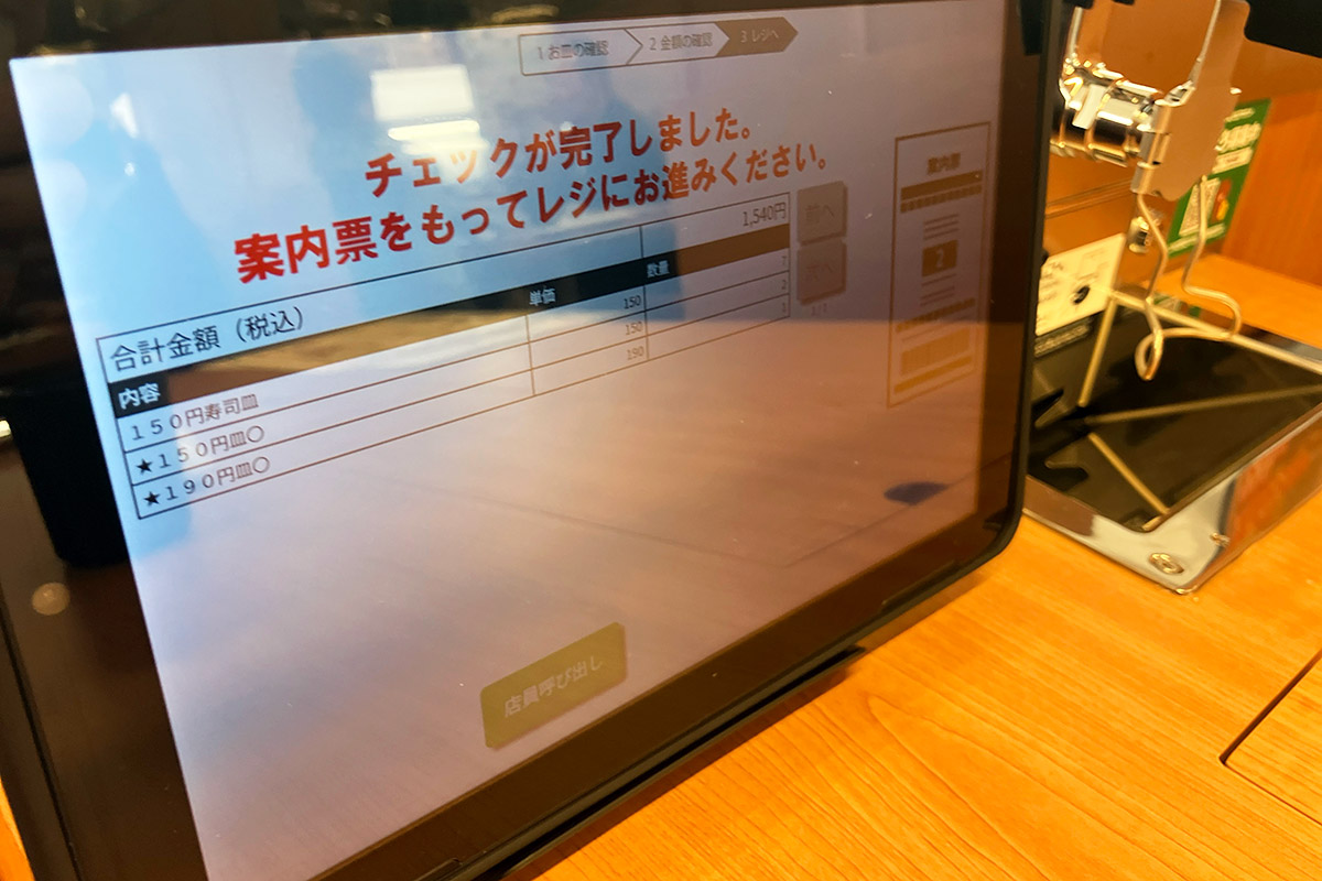いやー、めっちゃ食べた。どのネタもちゃんとしたクオリティですが、イワシが特に脂ののりがよくて旨かったー。ちなみに「はまち」のみ190円皿で、それ以外はぜんぶ150円です。