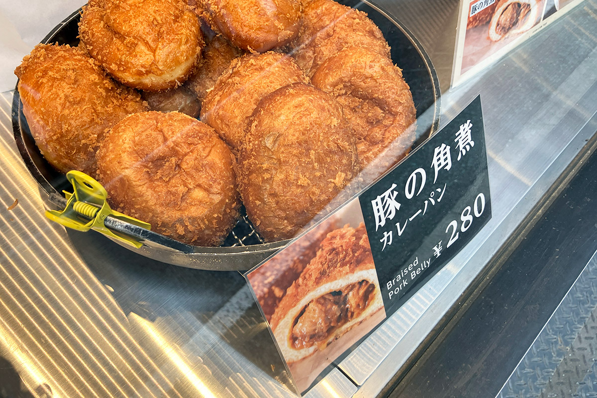 カレーパンは「海老とたっぷりチーズ」「ビーフ」「炙りチキン」「豚の角煮」の4種類で、どれも280円(税込)。めっちゃ悩んだけど、ここは味わったことがない「豚の角煮カレーパン」を味わおうじゃないか。