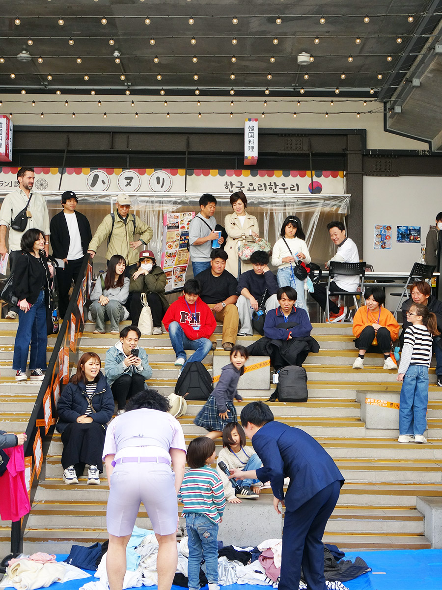 内容: お笑いライブでは漫才やギャグ芸人が出演。階段下をステージ代わりにして、寄席のようなイメージを演出。音楽ライブでは、生歌やアコースティックの演奏で近い距離ならではのライブを楽しめます。さらに5月10日(日)16時からは、1分間でいかに多く古着を着ることができるかを競う企画「古着ンピック」を開催します。
