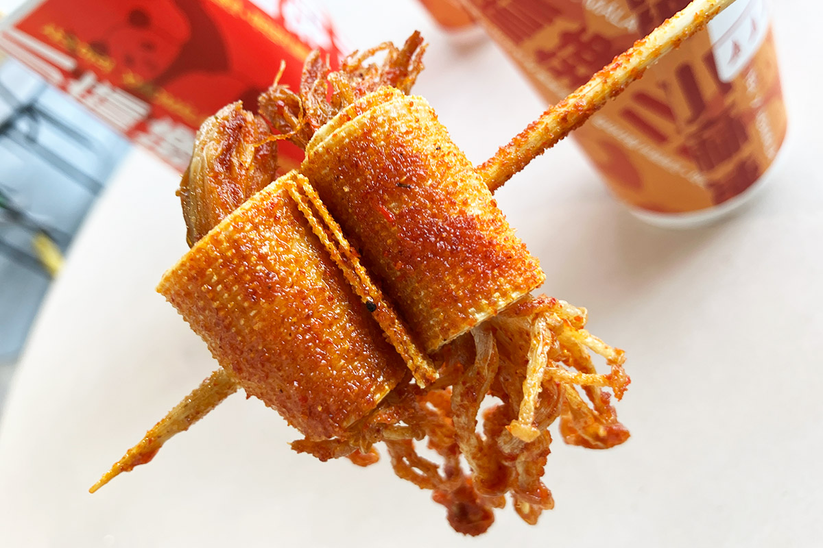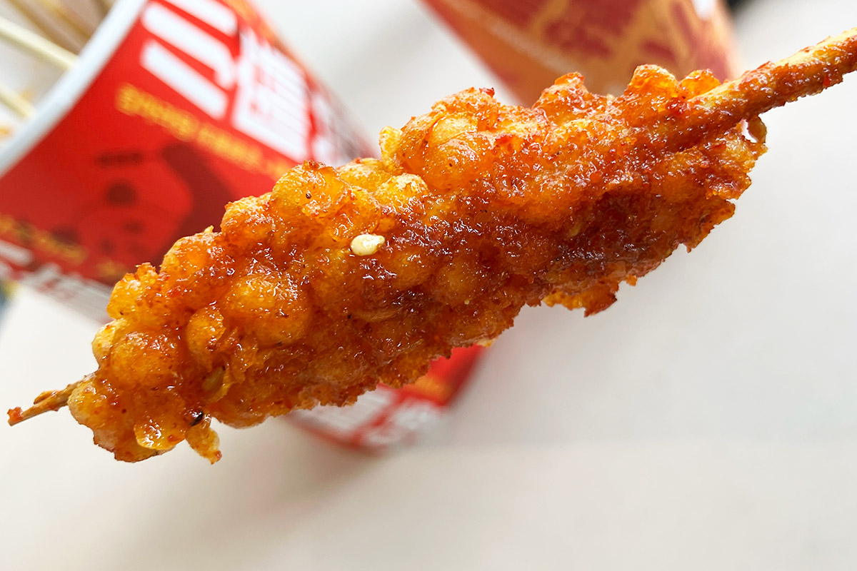 というわけで人生初の麻辣串、「サクサクささみ」からいただきます。ああ、これが麻辣串! めっちゃ、麻辣ですがスープではなくシーズニングで味付けされていてめっちゃ新感覚!! 揚げられているので食感も未体験で、面白い。あ、レベル3は結構来ますよ~。