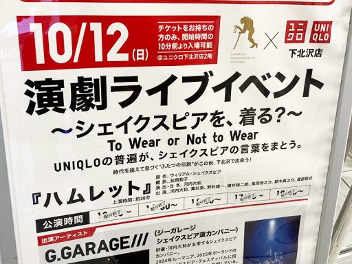 下北沢のユニクロで、シェイクスピア?『G.GARAGE///』シモキタに降臨